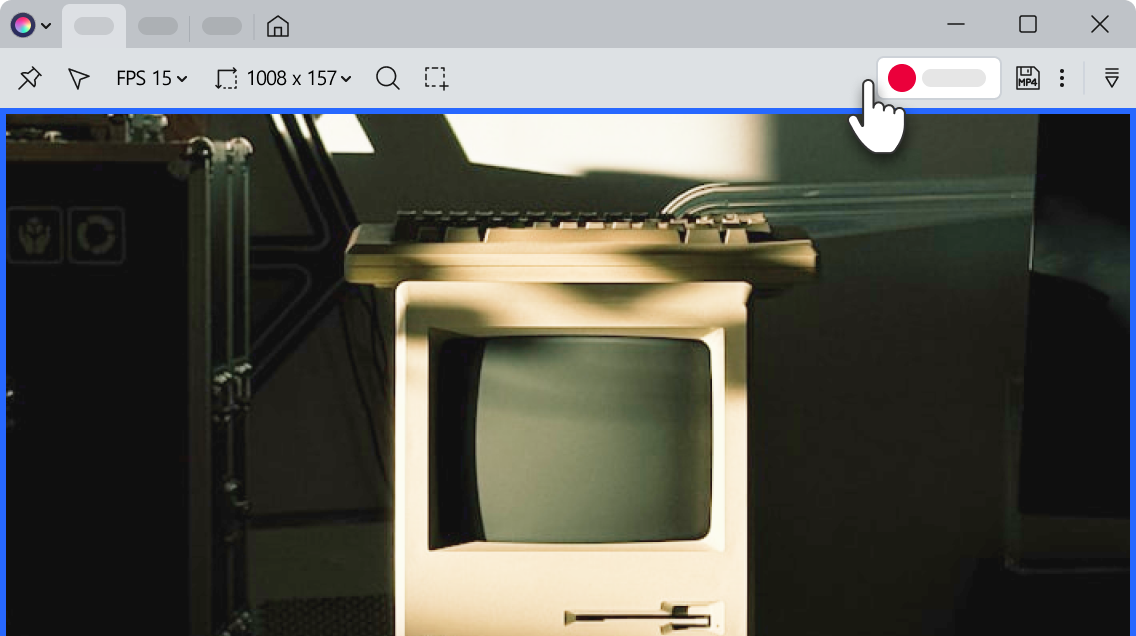Position Honeycam where you want to record, then simply press the Record, Stop, and Save buttons. Easily and quickly caputre the important moments as your animation.